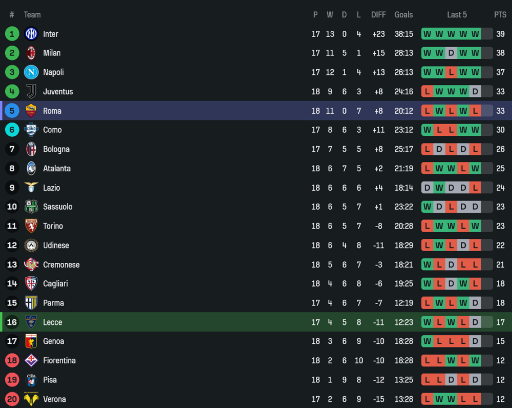 ฝั่งโรม่าเองผลงานจัดว่า “ขึ้นสุดลงสุด” แบบคาดเดายาก 5 เกมหลังทุกรายการชนะ 3 แพ้ 2 นัดที่น่าจดจำคือการถล่มเซลติก 3 0 ในยูโรป้า ลีก และยิงเจนัว 3 1 ที่สตาดิโอ โอลิมปิโก ขณะที่เกมเยือนในลีกยังเป็นจุดอ่อนชัดเจน 8 นัดชนะเพียง 2 เสมอ 2 แพ้ถึง 4 แถมยิงได้แค่ 6 ประตู เสียไปถึง 12 ลูก นัดล่าสุดบุกไปพ่ายอตาลันต้า 0 1 แสดงให้เห็นว่าถ้าเกมรุกไม่คมพอ แนวรับก็พร้อมเปิดช่องให้คู่แข่งลงโทษได้เช่นกัน