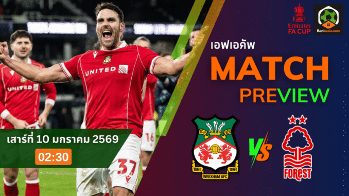 ค่ำคืนวันเสาร์ที่ 10 มกราคม 2569 แฟนบอลเตรียมตั้งปลุกดึกกันได้เลย เพราะศึกถ้วยเก่าแก่ของอังกฤษอย่าง เอฟเอ คัพ รอบนี้มีคู่เดือดที่น่าจับตามองสุดๆ ระหว่างเจ้าถิ่นอย่าง เร็กซ์แฮม ทีมพลังหนุ่มจากแชมเปี้ยนชิพ เปิดบ้านที่สนามเรซคอร์ส กราวน์ด ต้อนรับการมาเยือนของอดีตแชมป์ยุโรปอย่าง น็อตติ้งแฮม ฟอเรสต์ จากพรีเมียร์ลีก แข้งทั้งสองทีมจะลงหวดกันในเวลา 02.30 น. ตามเวลาไทย