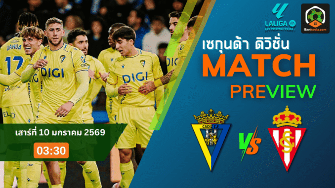 คืนวันเสาร์ที่ 10 มกราคม 2569 แฟนบอลสายสเปนิชต้องไม่พลาด ศึกลีกพระรอง เซกุนด้า ดิวิชั่น คู่เดือดที่เอสตาดิโอ นูเอโบ มิรันดิญ่า เมืองท่าอย่างกาดิซ เมื่อเจ้าถิ่น กาดิซ เตรียมเปิดบ้านรับการมาเยือนของ สปอร์ติ้ง กิฆอน เกมเตะช่วงดึกเวลา 03.30 น. ตามเวลาไทย บรรยากาศแบบบอลสเปนแท้ๆ กลิ่นอายทะเลปนกลิ่นไฟในสนาม