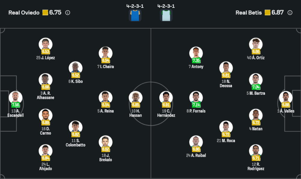 ฝั่งเบติสแม้ไม่มี อิสโก้ ที่คอยจ่ายคิลเลอร์พาส แต่การมี ฟอร์นัลส์ กับ รุยบัล คอยหมุนเปลี่ยนตำแหน่งกลางสนามช่วยกันสร้างสรรค์เกมก็ยังอันตรายอยู่ดี การทะลุช่องของ คูโช่ เอร์นานเดซ กับการเติมเกมสูงของฟูลแบ็กอย่าง ออร์ติส และ โรดริเกซ คืออาวุธที่อาจสร้างปัญหาใหญ่ให้แนวรับโอเบียโด้ หากจังหวะเพรสซิ่งแดนกลางหลุดเพียงครั้งเดียว