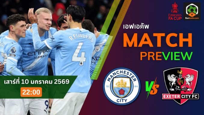 ศึกบอลถ้วย เอฟเอ คัพ อังกฤษ เมืองผู้ดีค่ำคืนนี้ แฟนบอลเตรียมมันส์ให้สุดทาง เมื่อ แมนเชสเตอร์ ซิตี้ เปิดสังเวียนเอติฮัด สเตเดี้ยม รับการมาเยือนของ เอ็กเซเตอร์ ซิตี้ ทีมมาดดุจากลีก วัน เกมนี้เตะวันเสาร์ที่ 10 มกราคม 2569 เวลา 22.00 น. ตามเวลาไทย ใครเปิดหน้าเช็ก ตารางบอลวันนี้ ต้องสะดุดตามองทันที เพราะนี่คือเกมที่แชมป์เก่าแห่งพรีเมียร์ลีกต้องการใช้เป็นเวทีปลดล็อกหลังสะดุดเสมอในลีกต่อเนื่องหลายนัด
