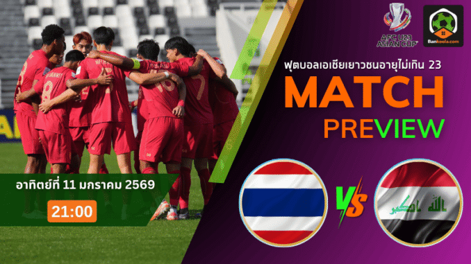 ฟุตบอล ยู-23 ชิงแชมป์เอเชีย คืนวันอาทิตย์ที่ 11 มกราคม 2569 เวลา 21.00 น. แฟนบอลไทยต้องไม่พลาดแมตช์สำคัญเมื่อ ทีมชาติไทย U23 ลงสนามดวลแข้งกับ อิรัก U23 เกมนี้ไม่ใช่แค่สามแต้มธรรมดา แต่คือศักดิ์ศรีของดาวรุ่งอาเซียนที่ต้องพิสูจน์ตัวเองบนเวทีทวีป