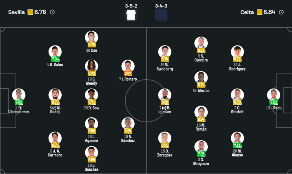 จุดเด่นของเซลต้าชัดเจนในเรื่องเกมรุกที่หลากหลาย ทั้งการทำชิ่งระหว่างแผงกลางกับแนวรุกพลังหนุ่มอย่างสเวดเบิร์กและซารากอซา บวกกับความคมของบอร์ฆา อิเกลเซียส ที่เล่นได้ทั้งพักบอลและจบสกอร์ ผสมกับประสบการณ์ของอัสปาสที่คอยลงมาช่วยคุมจังหวะในช่วงท้ายเกม ทำให้ทีมเยือนมีเครื่องมือมากพอจะบุกใส่เซบีย่าไม่ว่าจังหวะไหนของเกม