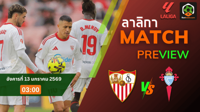 ศึกใหญ่บนแผ่นดินสเปนคืนวันอังคารที่ 13 มกราคม 2569 เวลา 03.00 น. ตามเวลาไทย แฟนบอลเตรียมระเบิดอารมณ์ไปกับคู่ระหว่าง เซบีย่า เปิดบ้านรับการมาเยือนของ เซลต้า บีโก้ ในศึก ลาลีกา สเปน ฤดูกาล 2568 2569 เกมนี้สำคัญอย่างยิ่งต่อทั้งสองฝั่ง เจ้าถิ่นต้องการหยุดสถิติพ่าย 3 นัดซ้อน ส่วนทีมเยือนกำลังไต่อันดับลุ้นพื้นที่ยุโรปแบบเข้มข้น ใครพลาดอาจสะเทือนยาวทั้งซีซั่น