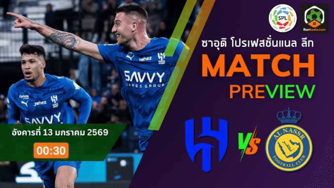 ค่ำคืนวันอังคารที่ 13 มกราคม 2569 เวลา 00.30 น. ที่สนามคิงดอม อารีนา แฟนบอลต้องวงกลมแดงในหน้า ตารางบอลวันนี้ เอาไว้ให้ดี เพราะนี่คือเกมที่อาจชี้อนาคตแชมป์ซาอุดิ ลีก เมื่อ “จ่าฝูง” อัล ฮิลาล ทีมฟอร์มโหดของ ซิโมเน่ อินซากี เปิดบ้านรับการมาเยือนของรองจ่าฝูง อัล นาสเซอร์ ที่มี คริสเตียโน โรนัลโด นำทัพ