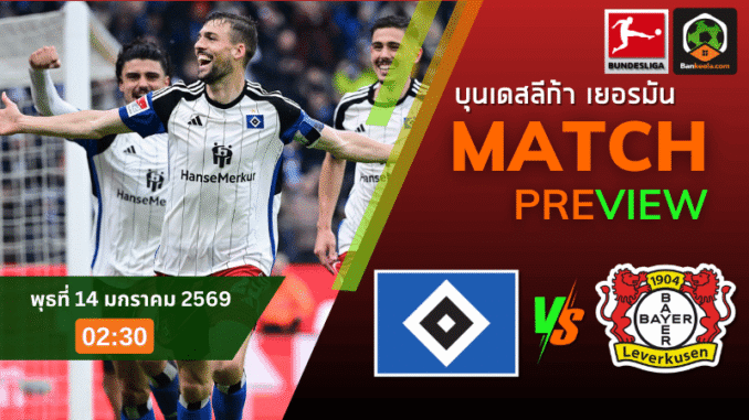 ค่ำคืนวันพุธที่ 14 มกราคม 2569 แฟนบอลเยอรมันต้องไม่พลาด ศึก บุนเดสลีก้า นัดมันส์กลางสัปดาห์ที่โฟล์คสพาร์คสตาดิโอน เมื่อเจ้าถิ่น ฮัมบูร์ก ทีมอันดับ 13 ซึ่งกำลังกระเสือกกระสนหนีโซนเพลย์ออฟตกชั้น เปิดบ้านรับการมาเยือนของ ไบเออร์ เลเวอร์คูเซ่น ทีมอันดับ 4 ที่กำลังล่าตั๋วฟุตบอลยุโรปอย่างดุเดือด เกมนี้เตะเวลา 02.30 น. ตามเวลาไทย ใครที่เปิดเช็ก ตารางบอลวันนี้ จะเห็นทันทีว่าคู่นี้คือหนึ่งในไฮไลต์ของคืนวันพุธอย่างแท้จริง