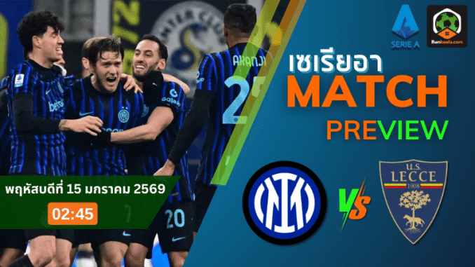 ค่ำคืนวันพฤหัสบดีที่ 15 มกราคม 2569 แฟนบอลอิตาลีเตรียมลุกจากโซฟา เมื่อ อินเตอร์ มิลาน จ่าฝูงแห่งแดนมะกะโรนี เปิดสังเวียนสตาดิโอ จูเซ็ปเป้ เมอัซซ่า รับการมาเยือนของ เลชเช่ ทีมหนีตายที่ยืนอยู่โซนท้ายตาราง เกมเตะเวลา 02.45 น. ตามโปรแกรมบนหน้า ตารางบอลวันนี้ คู่ดึกที่คอบอลห้ามพลาด