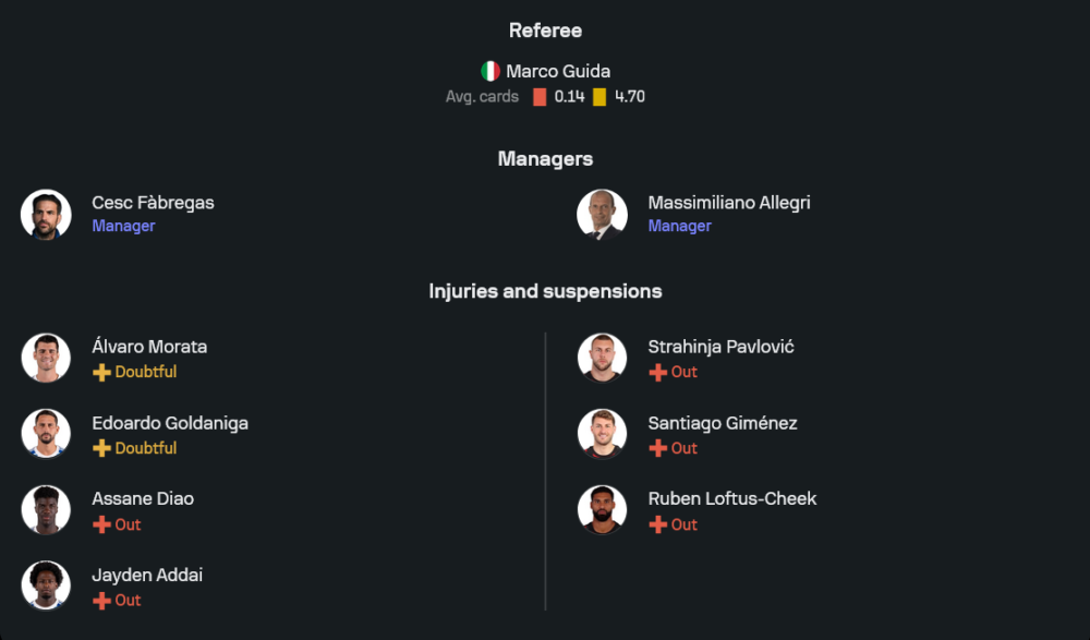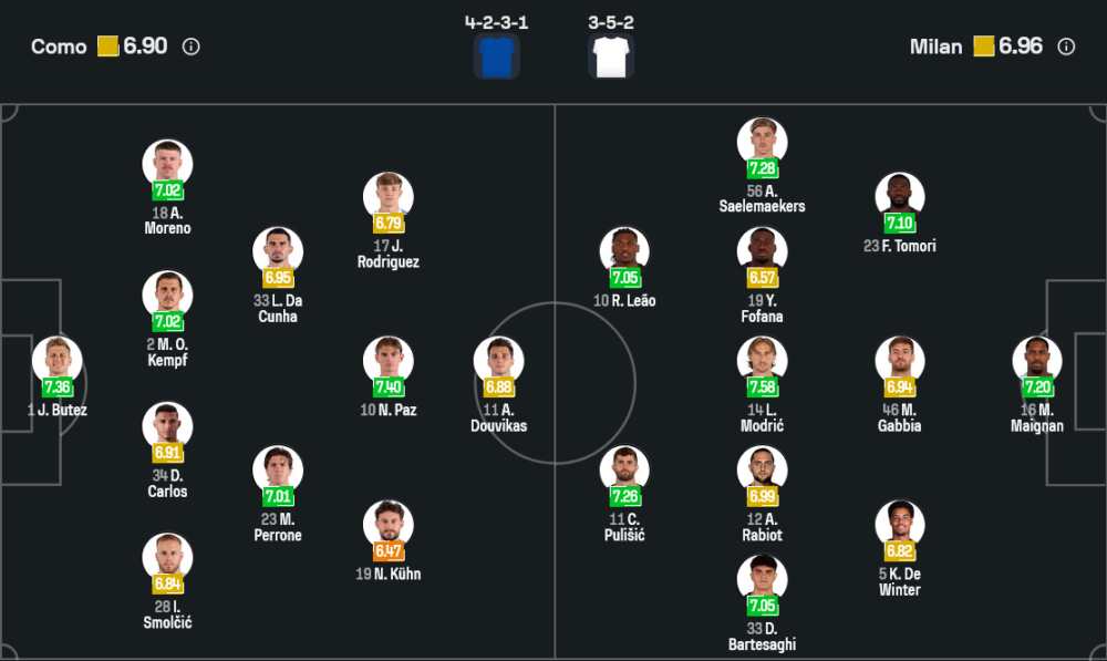 อย่างไรก็ตามข่าวดีคือ ลูก้า โมดริช พร้อมกลับมาคุมจังหวะเกมในแดนกลาง อีกทั้ง ฟิกาโย โทโมรี ก็พร้อมคัมแบ็กยืนแผงหลังในระบบ 3-5-2 ผู้รักษาประตูเป็น ไมค์ เมนญ็อง แผงหลังสามตัวใช้ คอเนอร์ เดอ วินเทอร์, มัตเตโอ กับเบีย และ โทโมรี รับผิดชอบงานหยุดเกมรุกโคโม่