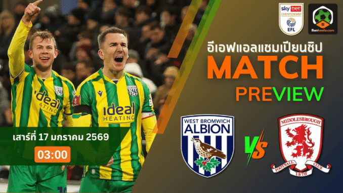 วิเคราะห์บอลแชมเปี้ยนชิพ อังกฤษ ระหว่าง เวสต์บรอมวิช อัลเบี้ยน พบ มิดเดิ้ลสโบรช์ 16/1/69
