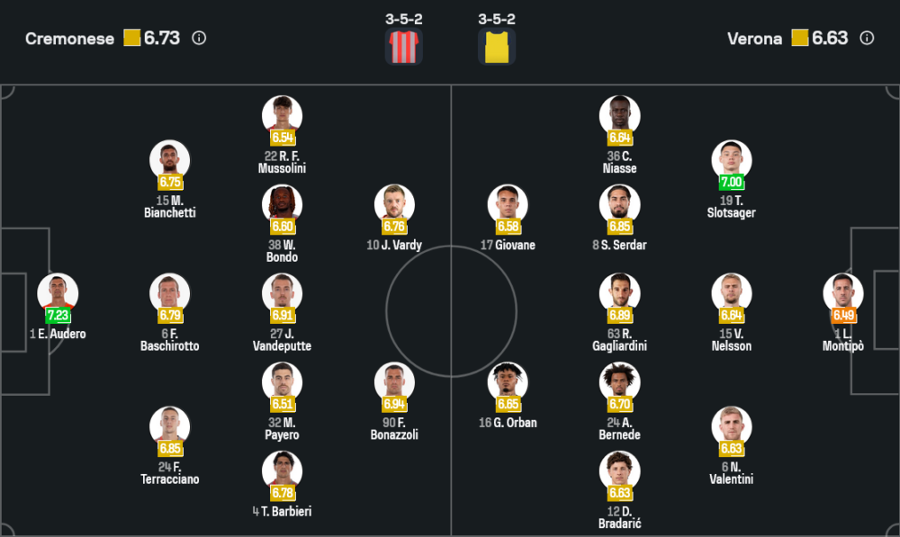 ฝั่งเวโรน่า แม้จะตัวเจ็บเยอะ แต่ยังอันตรายจากการสวนกลับ ความคล่องตัวของโจวาเน่และกิฟต์ ออร์บัน ทำให้แนวรับเครโมเนเซ่ต้องระวังพื้นที่หลังไลน์เป็นพิเศษ หากดันสูงเกินไปมีสิทธิ์โดนแทงทะลุช่องให้สองแนวรุกสปีดหนีไปดวลเดี่ยวได้ทุกเวลา