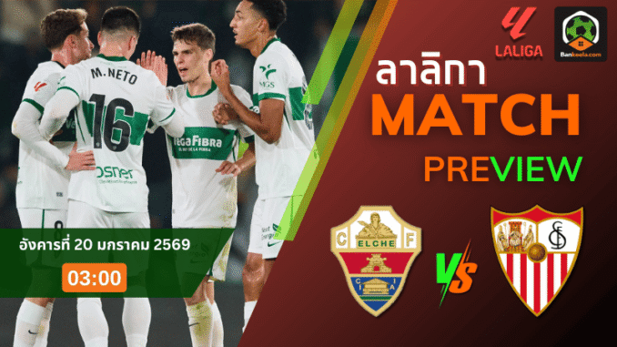 ศึก ลาลีกา สเปน คืนวันจันทร์ต่อเช้ามืดวันอังคาร 20 มกราคม 2569 คู่ดึกที่สายล่าแต้มหนีตายต้องจับตา เมื่อ เอลเช่ ทีมม้ามืดอันดับกลางตาราง เปิดบ้านรับการมาเยือนของ เซบีย่า ทีมดังที่ฤดูกาลนี้ฟอร์มรูดจนหล่นไปเกาะกลุ่มท้ายตาราง เกมนี้ลงเตะเวลา 03.00 น. ตามเวลาไทย อยู่ในโปรแกรมบน ตารางบอลวันนี้ คู่สำคัญที่อาจเปลี่ยนหน้าโซนหนีตกชั้นโดยตรง