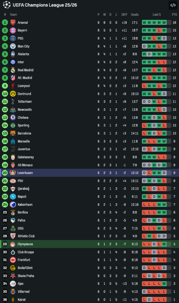 ในเวทีแชมเปี้ยนส์ลีก โอลิมเปียกอสเก็บชัยได้เพียงเกมเดียวจากหกนัด แต่หากมองฟอร์มภาพรวมทุกรายการถือว่าเริ่มกลับมาติดเครื่อง ช่วงหกเกมหลังทุกรายการ เก็บชัยได้สาม เสมอสอง แพ้เพียงนัดเดียว จุดเด่นคือเกมในบ้านที่แพ้ยากอย่างมาก พวกเขาเคยสู้กับเรอัล มาดริด แบบไม่มีกลัว ก่อนจะพ่ายแบบสุดมัน 3-4 แม้จะเสียถึงสี่ประตูจากฝีเท้าคมกริบของเอ็มบัปเป้ แต่ภาพรวมก็แสดงให้เห็นว่าเวลาได้เล่นต่อหน้าแฟนบอลตัวเอง โอลิมเปียกอสพร้อมเล่นงานทุกทีม