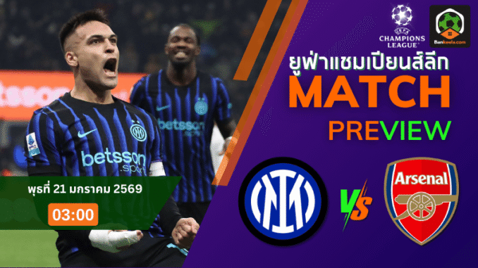 คืนวันอังคารต่อเช้าวันพุธที่ 21 มกราคม 2569 เวลา 03.00 น. สนามซาน ซิโร่จะลุกเป็นไฟ เมื่อเจ้าถิ่น อินเตอร์ มิลาน เปิดบ้านรับการมาเยือนของยักษ์ใหญ่จากเกาะอังกฤษอย่าง อาร์เซนอล ในศึก ยูฟ่า แชมเปียนส์ ลีก รอบลีกเฟส เกมนี้คือจุดชี้เป็นชี้ตายของงูใหญ่ที่ต้องการแต้มเพื่อการันตีเส้นทางสู่รอบน็อกเอาต์ ส่วนปืนใหญ่ขอเพียงหนึ่งคะแนนก็แทบจะปิดจ๊อบตีตั๋วเข้ารอบ 16 ทีมสุดท้ายได้แบบสบายใจ