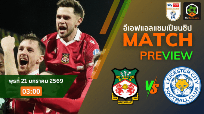 ศึก แชมเปี้ยนชิพ อังกฤษ คืนวันพุธที่ 21 มกราคม 2569 เวลา 03.00 น. ที่สนามเรซคอร์ส กราวนด์ แฟนบอลเตรียมรับความมันระดับไฟลุก เมื่อเจ้าถิ่นอย่าง เร็กซ์แฮม เปิดบ้านดวลกับทีมตกชั้นจากพรีเมียร์อย่าง เลสเตอร์ ซิตี้ เกมนี้ไม่ใช่แค่สามแต้มธรรมดา แต่คือแมตช์วัดใจในช่วงตารางเบียดแน่นของโซนกลางตารางที่มีแต้มห่างกันเพียงไม่กี่คะแนน ใครพลาดอาจหลุดวงโคจรลุ้นเพลย์ออฟทันที