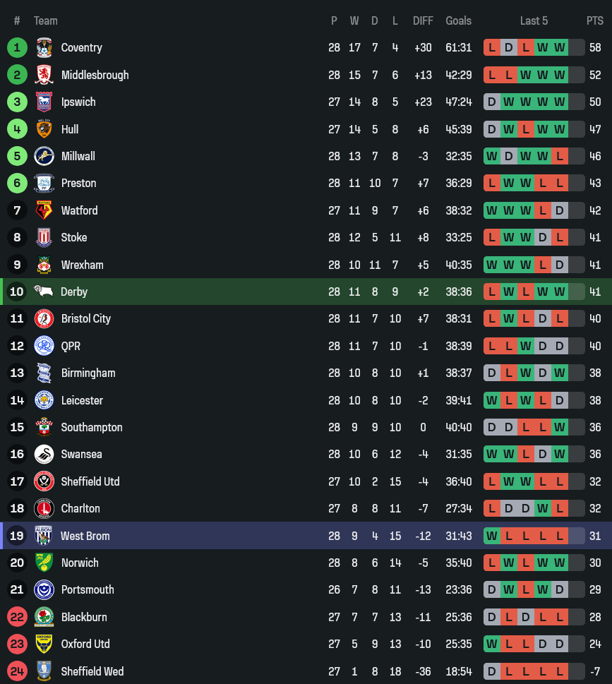 ศึกเดือดแชมเปี้ยนชิพ ดาร์บี้ล่าแต้มลุ้นเพลย์ออฟ เปิดบ้านดวลเวสต์บรอมหนีโซนแดง
