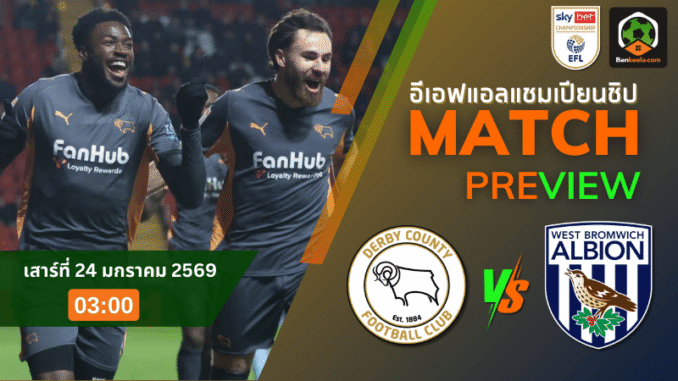 ค่ำคืนฟุตบอล แชมเปี้ยนชิพ ยังร้อนแรงต่อเนื่อง เกมนี้เป็นคิวยักษ์หลับสายกลางตารางอย่าง ดาร์บี้ เคาน์ตี้ เปิดสนามไพรด์ พาร์ค รับการมาเยือนของ เวสต์บรอมวิช อัลเบี้ยน ในคืนวันศุกร์ต่อเช้าวันเสาร์ที่ 24 มกราคม 2569 เวลา 03.00 น. ตามเวลาไทย เกมที่ทั้งสองฝ่ายไม่มีใครอยากพลาดคะแนน เพราะเจ้าถิ่นกำลังจ้องเกาะกลุ่มเพลย์ออฟ ส่วนทีมเยือนกำลังหนีหล่นสู่โซนตกชั้น ในมุมของคนลุ้นบอลเปิดดู ตารางบอลวันนี้ แล้วต้องวงไฮไลต์คู่นี้เอาไว้แบบห้ามกะพริบตา ดาร์บี้กำลังลุ้นชัยชนะนัดที่สามติดต่อกัน ขณะที่ เอริก แรมซีย์ นายใหญ่คนใหม่ของเวสต์บรอมต้องการชัยชนะแรกอย่างยิ่งหลังเปิดตัวด้วยความพ่ายแพ้สองเกมรวด ความกดดันเลยเทไปเต็มๆ ที่ฝั่งทีมเยือน ส่วนราคาหน้าเสื่อของบ่อนหลักในยุโรปยกให้ “แกะเขาเหล็ก” เป็นต่อนิดๆ จากฟอร์มและความมั่นใจที่เหนือกว่าเล็กน้อย แม้สถิติเล่นในบ้านจะยังไม่ไฉไลเท่าไรแต่วันนี้คือโอกาสทองที่จะเรียกศรัทธาแฟนบอลกลับมา