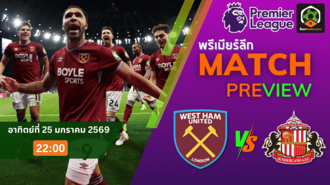 ศึกใหญ่คืนวันอาทิตย์ในเวที พรีเมียร์ลีก อังกฤษ ที่ลอนดอน สเตเดี้ยม ระอุเต็มพิกัด เมื่อ “ขุนค้อน” เวสต์แฮม ทีมอันดับ 18 ที่กำลังหนีตายแบบหายใจรดต้นคอ เปิดบ้านรับการมาเยือนของ “แมวดำ” ซันเดอร์แลนด์ ทีมอันดับ 9 ที่ยังอยู่ในเส้นทางลุ้นพื้นที่ยุโรป เกมนี้เตะในวันเสาร์ที่ 24 มกราคม 2569 เวลา 19.30 น. ที่อังกฤษ หรือราว 22.00 น. ตามเวลาไทย คู่นี้ถูกจับตามองในหน้า ตารางบอลวันนี้ แบบไม่ต้องสงสัย เพราะเป็นการปะทะกันของทีมที่ฟอร์มสุดเหวี่ยงทั้งคู่