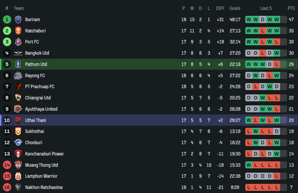 ด้านอุทัยธานี เอฟซี ลงเล่นในลีกไปแล้ว 17 นัดเช่นกัน เก็บชัย 5 เสมอ 5 แพ้ 7 ฟอร์มโดยรวมยังแกว่งๆ แต่จุดเด่นคือการยิงประตูที่เฉียบคม ค่าเฉลี่ยการทำประตูสูงถึง 3.29 ลูกต่อเกม ส่วนการเสียประตูราว 1.59 ลูก แปลว่าทีมกล้าเปิดเกมแลก ไม่เน้นอุด ผลคือเกมของอุทัยธานีมักออกมาสนุก ยิงกันเยอะ แฟนบอลได้ลุ้นตลอด 90 นาที
