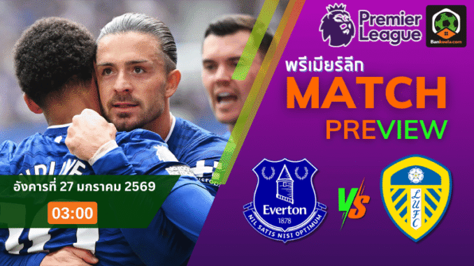 พรีเมียร์ลีก ศึกใหญ่ยามค่ำคืนบนเกาะอังกฤษ คู่ดุประจำโปรแกรมคืนวันอังคารที่ 27 มกราคม 2569 เวลา 03.00 น. ตามเวลาไทย แฟนบอลเตรียมลุ้นเมื่อ เอฟเวอร์ตัน เปิดรังฮิลล์ ดิ๊กคินสัน สเตเดี้ยม รับการมาเยือนของ ลีดส์ ยูไนเต็ด เกมนี้ไม่ใช่แค่แมตช์ธรรมดา แต่คือการวัดใจของสองทีมโซนกลางตารางที่พร้อมใส่เต็มเพื่อดันตัวเองให้ห่างจากหล่มหนีตกชั้น เจ้าถิ่นอันดับ 11 ต้องการสามแต้มเพื่อขยับเข้าใกล้กลุ่มลุ้นตั๋วยุโรป ส่วนทีมเยือนอันดับ 16 กดดันไม่น้อย เพราะแต้มห่างโซนแดงไม่มากผิดพลาดไม่ได้