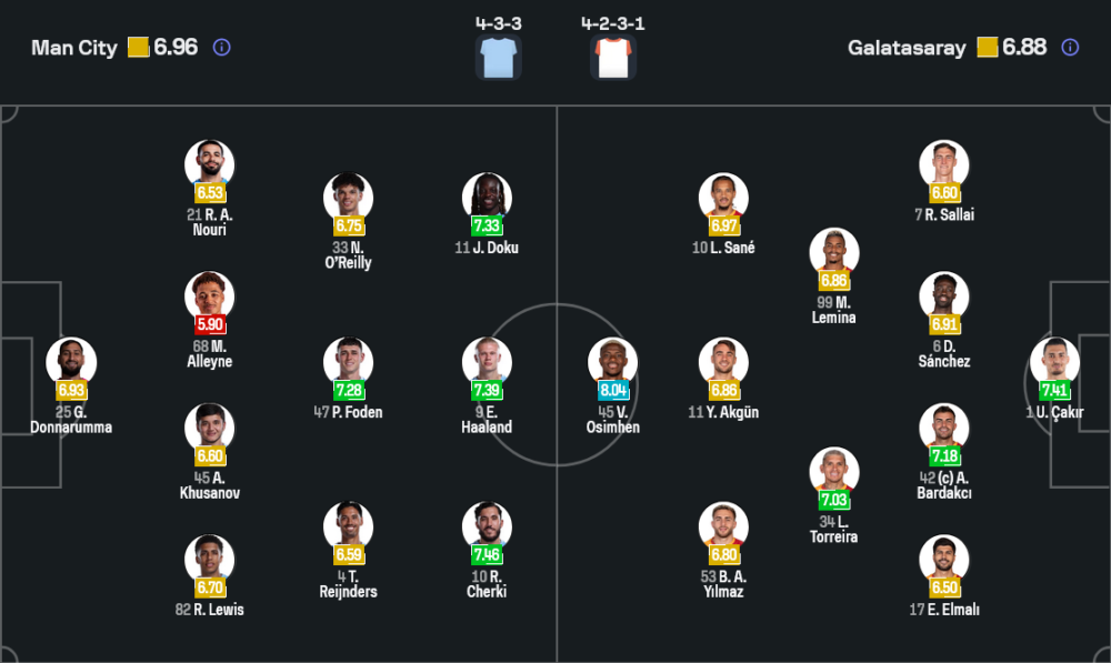 จากไลน์อัพที่โผล่บนหน้าจอ โซฟาสกอร์คาดว่าแชมป์อังกฤษจะมาในระบบ 4-3-3 ดัน จานลุยจิ ดอนนารุมม่า เฝ้าเสา แผงหลังใช้ ริโก้ ลูอิส ประจำการฝั่งขวา จับคู่เซ็นเตอร์กับ อับดูโคดีร์ คูซานอฟ และมี มาร์ก โอเรลลี่ ยืนอีกฝั่งช่วยเติมเกมรุก แดนกลางมี มาร์ค อัลลีนย์ ผสมกับ ฟิล โฟเด้น และ รายาน แชร์กี้ คอยเชื่อมเกมรุก สามแนวรุกริมเส้น–กึ่งหน้ากลางหมุนเวียนกันระหว่าง อาร์.เอ. นูรี่, โฟเด้น และ เจเรมี่ โดคู ส่วนหน้าเป้าคือ เออร์ลิ่ง ฮาลันด์ เครื่องจักรถล่มประตูประจำทีม ที่พร้อมรอใส่สกอร์ไม่ไว้หน้าใครทั้งนั้น
