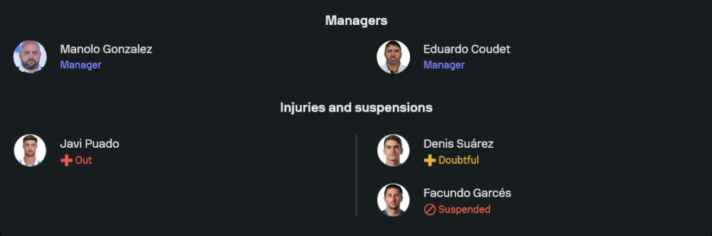 ในมุมแท็กติก จากภาพรวมตัวผู้เล่นล่าสุด เจ้าถิ่นมีตัวหลักพร้อมลุยเกือบครบ ยกเว้น ฆาบี ปูเอโด้ ที่ยังเดี้ยงยาว ส่วนอลาเบสต้องเช็กสภาพ เดนิส ซัวเรซ ซึ่งสื่อท้องถิ่นยกให้เป็นตัวความหวังแดนกลาง หากผ่านฟิต เกมแดนกลางจะดุเดือดขึ้นไปอีกขั้น ถือเป็นแมตช์ที่ใครคุมจังหวะได้ก่อน มีสิทธิ์ลากเกมไปในทางที่ตัวเองต้องการ