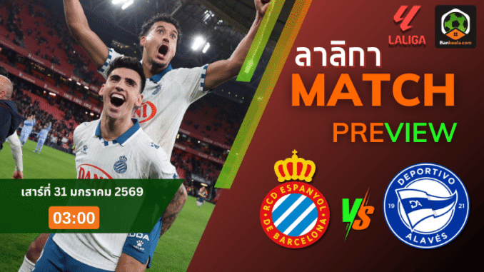 ศึก ลาลีกา สเปน คืนวันเสาร์ที่ 31 มกราคม 2569 คู่ดึกที่แฟนบอลต้องจ้องจอไม่กะพริบ เมื่อ เอสปันญ่อล ทีมอันดับ 5 ของตาราง เปิดรังคอร์เนญ่า อาร์เซเดเอ สเตเดี้ยม รับการมาเยือนของ อลาเบส ทีมอันดับ 15 ที่กำลังต้องการแต้มหนีโซนอันตราย เกมนี้เริ่มเขี่ยบอลเวลา 03.00 น. ตามเวลาไทย เป็นคู่ที่ถูกดึงสายตาจากคอลูกหนังในหน้า ตารางบอลวันนี้ แบบหลีกเลี่ยงไม่ได้
