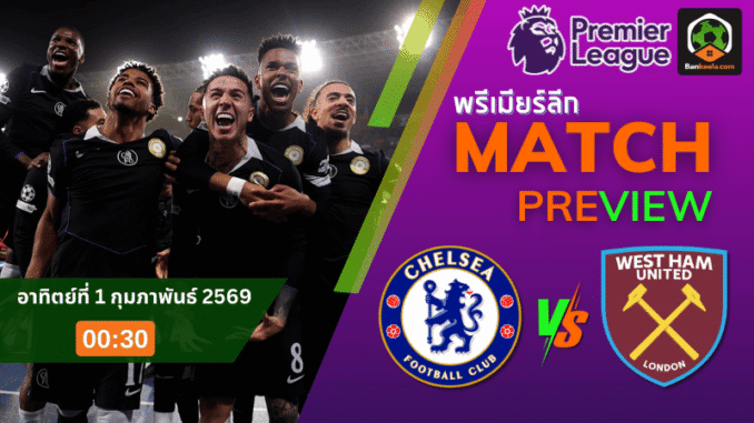 ศึกใหญ่ค่ำคืนวันอาทิตย์ที่ 1 กุมภาพันธ์ 2569 เวลา 00.30 น. แฟนบอลพรีเมียร์ลีกจับตาไปที่สังเวียน สแตมฟอร์ด บริดจ์ เมื่อเจ้าถิ่นอย่าง เชลซี เปิดบ้านรับการมาเยือนของคู่ปรับร่วมเมืองอย่าง เวสต์แฮม ยูไนเต็ด เกมนี้ไม่ใช่แค่ศักดิ์ศรีลอนดอนดาร์บี้ แต่ยังสำคัญต่ออันดับบนตารางอย่างยิ่ง หลังสิงห์บลูส์กำลังเร่งไล่พื้นที่ท็อปไฟว์ ส่วนขุนค้อนต้องหนีโซนแดงให้เร็วที่สุด