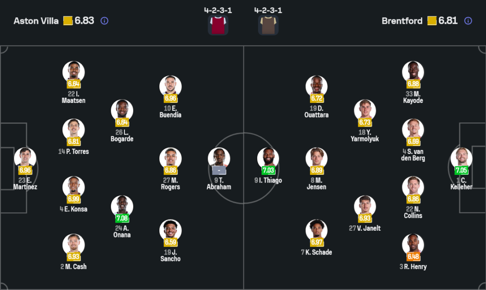 เจ้าถิ่นของอูไน เอเมรี่ ยังคงขับเครื่องด้วยระบบ 4-2-3-1 ที่ขึ้นชื่อลือชาเรื่องเกมเพรสซิ่งและการต่อบอลไหลลื่นจากหลังไปหน้า โกลยังคงเป็น เอมิเลียโน่ มาร์ติเนซ แผงหลังจากซ้ายไปขวาใช้เอียน มัตเซ่น, ปาอู ตอร์เรส, เอซรี่ คอนซ่า และแม็ตตี้ แคช คู่กลางให้ อมาดู โอนาน่า จับคู่กับ ลาแมร์ โบการ์ด คุมจังหวะและตัดเกมรุกคู่แข่ง สามแนวรุกด้านหลังหอกเป้าเป็น เจดอน ซานโช่ ทางขวา เอมิเลียโน่ บูเอนเดีย ทางซ้าย และ มอร์แกน โรเจอร์ส ยืนเป็นเพลย์เมกเกอร์ ส่วนหน้าเป้าฝากความหวังไว้ที่ แทมมี่ อับราฮัม ที่เพิ่งเรียกความมั่นใจจากการยิงประตูสำคัญในบอลยุโรป