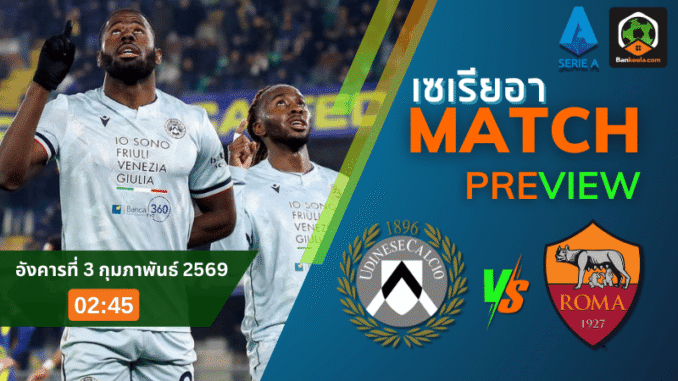ศึกใหญ่บนเวที กัลโช่ เซเรีย อา คืนวันอังคารนี้ แฟนบอลต้องจับตาเมื่อ อูดิเนเซ่ เปิดบ้านรอต้อนรับการมาเยือนของยักษ์ใหญ่จากกรุงโรมอย่าง โรม่า แข่งขันคืนวันอังคารที่ 3 กุมภาพันธ์ 2569 เวลา 02:45 น. เกมนี้ไม่ใช่แค่สามแต้มธรรมดา แต่คือจุดเปลี่ยนสำคัญของทั้งสองสโมสรในเส้นทางฤดูกาลยาวเหยียด โดยเฉพาะเจ้าถิ่นที่ต้องการคะแนนเพื่อดันตัวเองให้ห่างจากโซนลุ้นหนีตกชั้น ส่วนทีมเยือนต้องการชัยชนะเพื่อไล่กดดันพื้นที่ยุโรปให้แน่นขึ้นกว่าเดิม