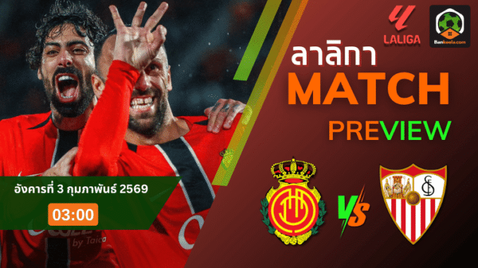 ศึก ลาลีกา สเปน คืนวันอังคารที่ 3 กุมภาพันธ์ 2569 เวลา 03.00 น. แฟนบอลชาวไทยเตรียมเปิดจอรอได้เลย เมื่อ มายอร์ก้า เปิดบ้านบนเกาะกลางทะเลเมดิเตอร์เรเนียน รับการมาเยือนของคู่แข่งจอมเก๋าอย่าง เซบีย่า เกมนี้ไม่ใช่แค่สามแต้มธรรมดา แต่คือแมตช์ชี้โมเมนตัมของทั้งสองสโมสรในช่วงหัวเลี้ยวหัวต่อของซีซั่น
