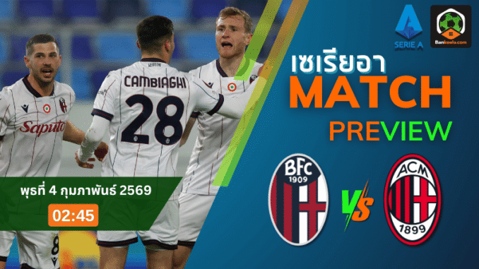 ศึกใหญ่บนเวที กัลโช่ เซเรีย อา คืนวันพุธที่ 4 กุมภาพันธ์ 2569 แฟนบอลต้องไม่พลาดแมตช์เดือดที่สนาม สตาดิโอ เรนาโต้ ดัลล’อาร่า เมื่อ โบโลญญ่า ทีมอันดับ 9 เปิดรังรับการมาเยือนของ เอซี มิลาน รองจ่าฝูงที่กำลังไล่กดดันทีมนำอย่างหนัก เกมนี้คิกออฟเวลา 02.45 น. ตามเวลาเมืองไทย เป็นคู่ที่ถูกจับตาในหน้ากระดาน ตารางบอลวันนี้ แบบชนิดตัวแดง เพราะมีผลโดยตรงกับเส้นทางลุ้นแชมป์ของปีศาจแดงดำ
