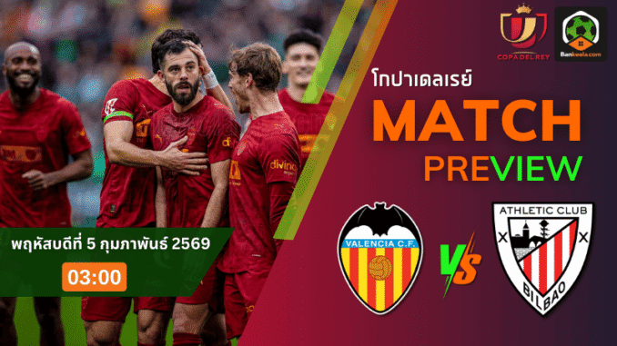 ค่ำคืนวันพฤหัสบดีที่ 5 กุมภาพันธ์ 2569 สนามเมสตาย่า สเตเดี้ยมของเหล่าแฟนบอล “ไอ้ค้างคาว” กำลังจะลุกเป็นไฟ เมื่อศึกถ้วย โกปา เดล เรย์ รอบก่อนรองชนะเลิศ ระเบิดความมันส์ระหว่างเจ้าบ้านอย่าง บาเลนเซีย ดวลเดือดกับผู้มาเยือนสายบู๊จากบาสก์อย่าง แอธเลติก บิลเบา เวลา 03.00 น. ตามเวลาประเทศไทย เกมนี้เรตเปิดมาให้ราคาอยู่ที่ “เสมอ” บ่งบอกชัดว่าสูสีสุดๆ ไม่มีใครเหนือกว่าในสายตาบ่อน แต่ในบรรยากาศบอลถ้วยแบบน็อกเอาต์ ใครพลาดเพียงจังหวะเดียวอาจต้องเก็บกระเป๋ากลับบ้านทันที