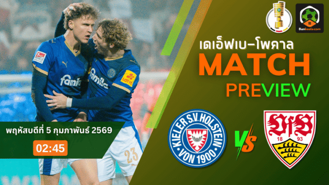 ค่ำคืนวันพฤหัสบดีที่ 5 กุมภาพันธ์ 2569 แฟนบอลสายลุยห้ามละสายตา เมื่อศึก เดเอฟเบ โพคาล เยอรมัน รอบลึกเริ่มร้อนระอุที่ โฮลสไตน์ สตาดิโอน “น้องใหม่จอมลุย” อย่าง โฮลสไตน์ เคียล จากลีก้า สอง เปิดบ้านรับมือ “ม้าขาว” สตุ๊ตการ์ต ทีมฟอร์มแรงจากบุนเดสลีกา เตะกันในเวลา 02.45 น. ตามเวลาประเทศไทย ใครอยากอัปเดตคู่เตะคืนนี้เช็กได้จาก ตารางบอลวันนี้ ก่อนกดเปิดหน้าจอรอดูได้เลย
