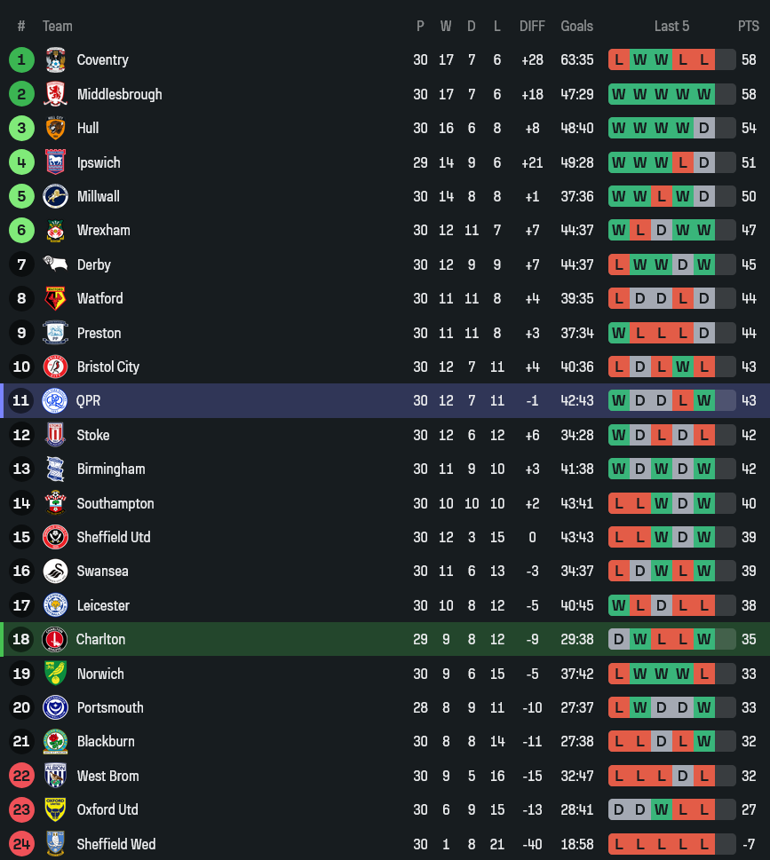 เกมนี้ความหมายต่อชาร์ลตันหนักกว่าตารางอันดับบอกไว้ เพราะทุกแต้มคือชีวิตจริงในโซนหนีตกชั้น จุดที่เจ้าถิ่นได้เปรียบคือความพร้อมตัวหลักที่ค่อนข้างครบ และสไตล์ 3-4-3 ทำให้พวกเขามีคนอยู่ในพื้นที่อันตรายมากพอจะกดดันแนวรับคิวพีอาร์ได้เป็นระยะ โดยเฉพาะบอลด้านข้างที่ชาร์ลตันชอบเร่งจังหวะให้เร็วแล้วเปิดเข้ากลางเพื่อให้ตัวค้ำพักหรือโหม่งชงต่อ ขณะที่คิวพีอาร์แม้ตัวเจ็บเยอะ แต่ระบบ 4-2-3-1 ยังทำให้แดนกลางมีชั้นเชิงคุมเกมได้ ถ้าพวกเขายืนโซนแน่นแล้วเล่นสวนกลับด้วยความเร็ว เกมนี้เจ้าบ้านมีสิทธิ์เจอของแข็งเหมือนกัน