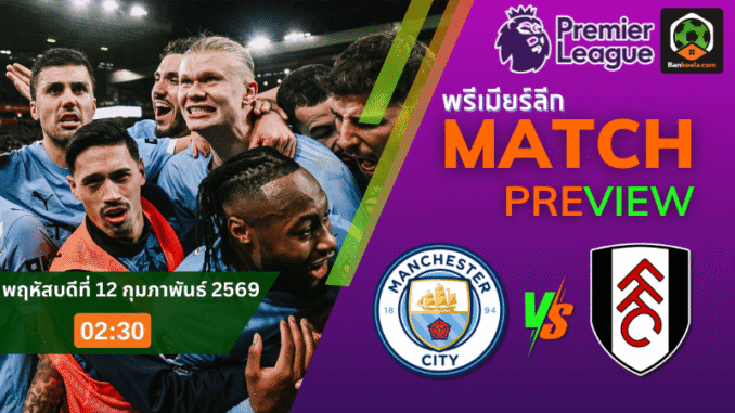ค่ำคืนวันพฤหัสบดีที่ 12 กุมภาพันธ์ 2569 แฟนบอลอังกฤษเตรียมระทึก เมื่อศึก พรีเมียร์ลีก อังกฤษ คู่ดึกประจำคืนระเบิดขึ้นที่เอติฮัด สเตเดี้ยม ระหว่าง แมนเชสเตอร์ ซิตี้ รองจ่าฝูงของตาราง เปิดบ้านรับการมาเยือนของ ฟูแล่ม ทีมแกร่งอันดับ 10 ที่พร้อมมาบู๊แบบไม่เกรงกลัวใคร ศึกนี้เตะในเวลา 02.30 น. ตามโปรแกรมที่ถูกจดไว้แน่น ๆ ในหน้า ตารางบอลวันนี้ ของคอลูกหนังทั่วประเทศ