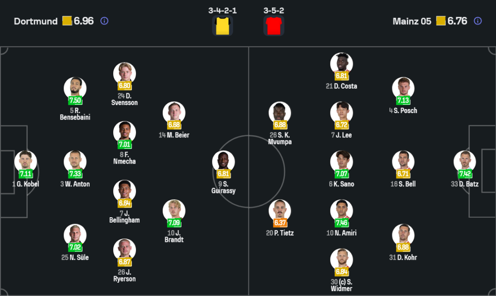 แดนกลางยังเป็นเฟลิกซ์ เอ็นเมช่า จับคู่กับดาวรุ่งพุ่งแรงอย่าง จู๊ด เบลลิงแฮม คอยคุมจังหวะ ขนาบข้างด้วยวิงแบ็ก ยูเลียน ไรเออร์สัน ทางขวา และ ดาเนี่ยล สเวนส์สัน ทางซ้าย สองตัวรุกด้านหลังหอกมี มักซิมิเลี่ยน ไบเออร์ กับ ยูเลียน บรันด์ คอยสร้างสรรค์เกม ป้อนบอลให้หัวหอกตัวเป้าสุดโหด เชห์รู กีราสซี่ ที่ซัดเกือบสองหลักในลีกแล้ว ลงล่าตาข่ายในระบบ 3-4-2-1