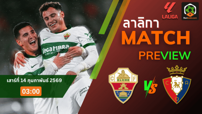 ค่ำคืนวันเสาร์ที่ 14 กุมภาพันธ์ 2569 เวลา 03.00 น. ตามเวลาไทย ศึก ลาลีกา สเปน เตรียมระเบิดความมันที่เอสตาดิโอ มานูเอล มาร์ติเนซ บาเลโร่ เมื่อเจ้าถิ่นอย่าง เอลเช่ ทีมอันดับ 15 เปิดบ้านรับมือผู้มาเยือนฟอร์มแรงอย่าง โอซาซูน่า อันดับ 9 ของตาราง เกมนี้มีความสำคัญอย่างยิ่งต่อทั้งสองฝั่ง เจ้าบ้านต้องการแต้มหนีโซนล่าง ส่วนทีมเยือนมองไกลถึงการไล่จี้โควตายุโรปบนหน้า ตารางบอลวันนี้