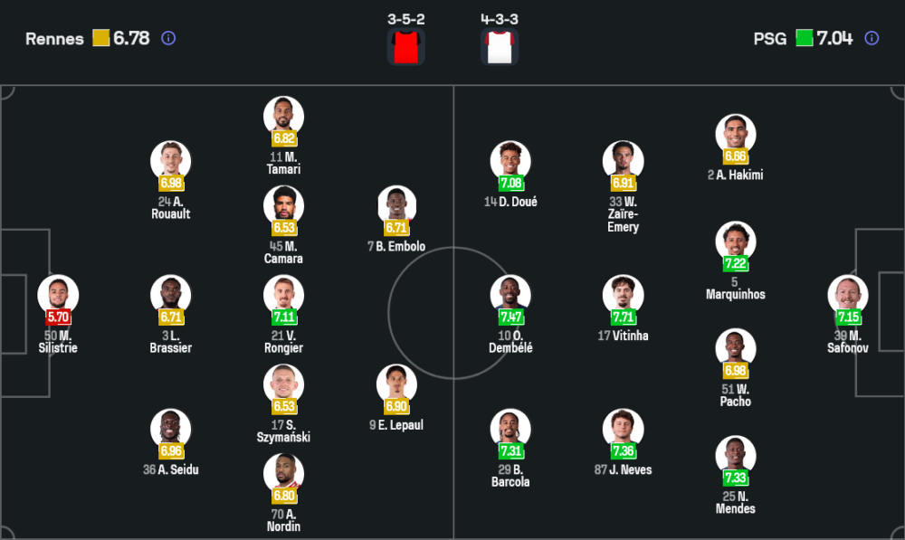 แดนกลางสามคนประกอบด้วย วาร์เรน แซร์ร์ เอเมรี, วิตินญา และ เจา เนเวส คอยคุมจังหวะ ขับเคลื่อนเกมตั้งแต่กลางสนามขึ้นไป แดนหน้าใช้สามประสานสุดจี๊ด แบร์กทร็องด์ บาร์โกลา ยืนริมเส้นซ้าย อุสมาน เด็มเบเล่ ปักหลักด้านขวา ส่วนหัวหอกตัวเป้าอาจเป็น ควิชา ควารัตสเคเลีย ที่คอยสลับตำแหน่งหุบเข้ากลางสร้างความปั่นป่วนให้แนวรับเจ้าบ้าน