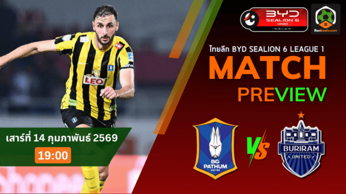 ศึก BYD SEALION 6 ลีกหนึ่ง คืนวันเสาร์ที่ 14 กุมภาพันธ์ 2569 เวลา 19.00 น. แฟนบอลไทยต้องเตรียมตัวให้พร้อม เพราะที่ลีโอ สเตเดียม บีจี ปทุม ยูไนเต็ด ภายใต้แม่ทัพคนใหม่อย่าง วลาดิเมียร์ วูโยวิช จะเปิดบ้านรับศึกหนักกับ บุรีรัมย์ ยูไนเต็ด ทีมเบอร์หนึ่งของลีกในตอนนี้ เกมนี้ไม่ใช่แค่ศักดิ์ศรีของสองสโมสรใหญ่ แต่ยังเป็นจุดชี้วัดทิศทางฤดูกาลของทั้งคู่ด้วย เมื่อไล่ดูหน้าโปรแกรมบน ตารางบอลวันนี้ จะเห็นว่าแมตช์นี้ถูกขีดเส้นใต้เอาไว้ชัดเจนว่า “ห้ามพลาด”