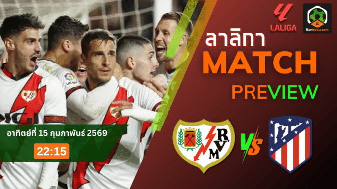 เกมลีกค่ำวันอาทิตย์ที่ 15 กุมภาพันธ์ 2569 เวลา 22.15 น. แฟนบอลสเปนจับตาไปที่สังเวียนกัมโป เด ฟุตบอล เด บาเญกาส เมื่อ ราโย บาเยกาโน่ ทีมอันดับ 18 เปิดรังรับมือรองจ่าฝูงอย่าง แอตเลติโก มาดริด ในศึก ลาลีกา สเปน ที่ทั้งสองฝั่งต่างมีเดิมพันชีวิตของฤดูกาลอยู่บนผืนหญ้า 90 นาทีนี้เต็มๆ เจ้าถิ่นต้องดิ้นหนีโซนสีแดง ส่วนทีมเยือนต้องกดดันจ่าฝูงให้ได้ต่อเนื่อง เกมนี้จึงไม่ใช่แค่สามแต้มธรรมดา แต่คือศักดิ์ศรีและแรงเหวี่ยงของทั้งฤดูกาล