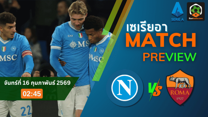 ศึกกัลโช่ เซเรีย อา คืนวันจันทร์ที่ 16 กุมภาพันธ์ 2569 เวลา 02.45 น. ตามเวลาไทย แฟนบอลต้องลุกมานั่งจ้องจอเมื่อ นาโปลี เปิดสังเวียน สตาดิโอ ดีเอโก้ อาร์มานโด มาราโดน่า รับการมาเยือนของ โรม่า เกมใหญ่ที่ทั้งสองทีมต่างต้องการสามแต้มเพื่อยืนระยะบนเวทีสูงสุดของอิตาลีให้มั่นคงกว่าที่เป็นอยู่ในตอนนี้ คู่นี้ถูกจับจ้องในหน้าหนังสือพิมพ์และรายการทีวี เพราะรูปเกมมักออกมาเข้มข้น ดุดัน แทบไม่เคยทำให้แฟนบอลผิดหวัง