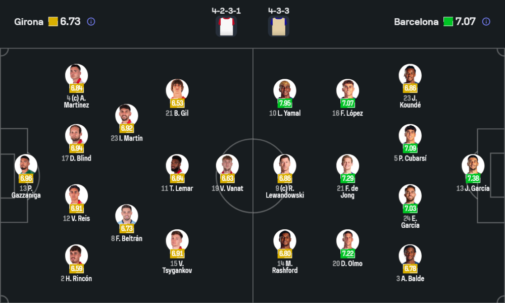 อย่างไรก็ดี ขุมกำลังหลักยังอยู่ครบพอสำหรับแผน 4-3-3 ผู้รักษาประตูใช้ หัวหอกดาวรุ่งอย่าง ฆูเลีย ปาเรเดส การ์เซีย เฝ้าเสา แผงหลังสี่คนประกอบด้วย ชูลส์ กุนเด้, เปา กูบาร์ซี, เอริก การ์เซีย และ อเลฆานโดร บัลเด้ กลางสามคนส่ง เฟรงกี้ เดอ ยอง ประสานงานกับ มาร์คัส แรชฟอร์ด และ ดานี โอลโม่ ที่สามารถโยกไปเล่นริมเส้นได้ด้วย ขณะที่แดนหน้าจัดชุดใหญ่ใส่เต็ม ลามีน ยามาล ลากเลื้อยทางซ้าย โรเบิร์ต เลวานดอฟสกี้ ยืนหน้าเป้า และ เฟร์มิน โลเปซ ทำเกมรุกทางขวา