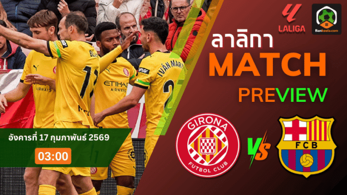 วันอังคารที่ 17 กุมภาพันธ์ 2569 เวลา 03:00 น. แฟนบอลแดนกระทิงเตรียมระเบิดอารมณ์กันยามดึก เมื่อเกมใหญ่โซนคาตาลันกลับมาปะทุอีกครั้ง เจ้าถิ่น จีโรน่า เปิดบ้านรับการมาเยือนของจ่าฝูงอย่าง บาร์เซโลน่า เกมนี้ไม่ใช่แค่ศักดิ์ศรีจังหวัดเดียวกัน แต่ยังเกี่ยวพันโดยตรงกับเส้นทางลุ้นแชมป์ในโค้งสำคัญของฤดูกาล ลาลีกา สเปน ฤดูกาล 2025-26 อีกด้วย