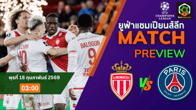 ค่ำคืนฟุตบอลยุโรปวันพุธที่ 18 กุมภาพันธ์ 2569 เวลา 03.00 น. สนามสต๊าด หลุยส์ เดอซ์ ในราชรัฐโมนาโกเตรียมลุกเป็นไฟ เมื่อเจ้าถิ่น โมนาโก เปิดบ้านรับมือแชมป์เก่าอย่าง ปารีส แซงต์-แชร์กแมง ในรอบเพลย์ออฟนัดแรกของศึก ยูฟ่า แชมเปี้ยนส์ ลีก ฤดูกาลนี้ เกมนี้ไม่ใช่แค่ศึกชี้ชะตาตั๋วเข้ารอบ 16 ทีมสุดท้ายเท่านั้น แต่ยังเป็นศึกศักดิ์ศรีระหว่างสองสโมสรยักษ์ใหญ่จากลีกเมืองน้ำหอมที่รู้ไส้รู้พุงกันเป็นอย่างดี