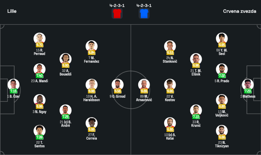 Ozer – Santos, Mandi, Ngoy, Verdonk – Mukau, Andre – Bouaddi, Correia, Fernandez – Giroud