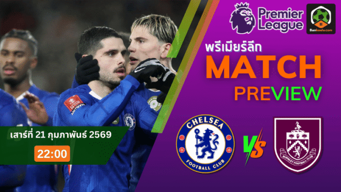 ศึก พรีเมียร์ลีก อังกฤษ คืนวันเสาร์ที่ 21 กุมภาพันธ์ 2569 เวลา 22:00 น. ที่สแตมฟอร์ด บริดจ์ คือเกมที่อารมณ์มันมาเองตั้งแต่ยังไม่เขี่ยบอล เมื่อ เชลซี พบ เบิร์นลีย์ ในช่วงที่เจ้าถิ่นกำลังเร่งเครื่องไล่พื้นที่หัวตาราง ขณะที่ทีมเยือนต้องดิ้นทุกลมหายใจเพื่อเอาตัวรอดจากโซนอันตราย ภาพรวมก่อนแข่งฝั่งเชลซีดูเหนือกว่าชัดทั้งคุณภาพเกมรุก ความมั่นใจ และการเล่นในบ้านที่พร้อมเร่งสปีดกดคู่แข่งให้หัวทิ่มตั้งแต่ต้นเกม