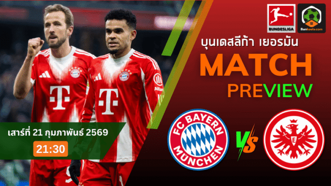 ศึก บุนเดสลีกา คืนวันเสาร์ที่ 21 กุมภาพันธ์ 2569 เวลา 21:30 น. ที่อลิอันซ์ อารีน่า คือเกมที่กลิ่นดราม่าลอยมาแต่ไกล เพราะ บาเยิร์น มิวนิค ในฐานะทีมอันดับ 1 กำลังอยู่ในโหมดเดินหน้ากวาดแต้มแบบไม่เปิดโอกาสให้ใครหายใจ ขณะที่ ไอน์ทรัค แฟร้งค์เฟิร์ต อันดับ 7 ต้องบุกมาชนกำแพงที่แข็งที่สุดของลีกในช่วงจังหวะที่ตัวเจ็บตัวหายยังวุ่นไม่จบ ราคาที่เปิดมาโคตรแรงกับ ราคาบอลวันนี้ บาเยิร์นต่อ 2.5 ชัดเจนว่าเจตนาคือ “ให้ต่อก็ยังต้องยิงให้ขาด” และถ้าคุณกำลังไล่เช็ก ตารางบอลวันนี้ คู่นี้คือหนึ่งในเกมที่อุณหภูมิเดือดสุดของคืน