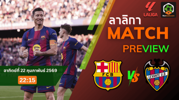 เกมนี้คือคืนที่บาร์เซโลน่าไม่มีสิทธิ์ “เล่นเพื่อหล่อ” อีกต่อไป เพราะหลังสะดุดแพ้ติดกันจนเสียโมเมนตัมในลีก ลาลีกา พวกเขาต้องกลับมาเอาชนะให้แบบขาดลอยเพื่อเรียกศรัทธา ทั้งแฟนบอลและห้องแต่งตัวให้กลับมาอยู่ฝั่งตัวเองให้หมด นัดวันอาทิตย์ที่ 22 กุมภาพันธ์ 2569 เวลา 22:15 น. ที่สนามเอสตาดิโอ มูนิซิปัล เด มอนติลิบี้ บรรยากาศมันส์แน่ในคืน ตารางบอลวันนี้ ที่ชื่อชั้นต่างกันสุดขั้ว แถมเรตเปิดมาแรงแบบไม่ให้คิดมากกับ ราคาบอล บาร์เซโลน่าต่อ 2.5 เกมนี้ถ้าจะต่อก็ต้องต่อแบบเชื่อว่า “ยิงไม่ยั้ง” ถ้าจะรองก็ต้องมั่นใจว่าเลบันเต้จะตายยากจริง ๆ