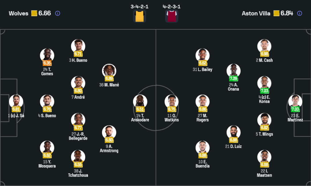 เมื่อมองภาพรวมเชิงแท็กติก เกมนี้รูปแบบการยืนจะเป็น 3-4-2-1 ของวูล์ฟส์ ปะทะ 4-2-3-1 ของวิลล่า เส้นแบ่งชัดเจนอยู่ที่แดนกลาง หากคู่กลางเจ้าถิ่นอย่าง เบลล์การ์ด กับ ตรินดาเด้ รับมือการบีบพื้นที่ของ โอนาน่า และ ลุยซ์ ไม่อยู่ จะทำให้แนวรับสามคนของวูล์ฟส์ถูกโจมตีอย่างต่อเนื่อง