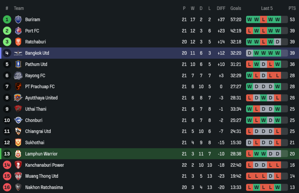 - สกอร์ที่คาด: ลำพูน วอริเออร์ 1–2 ทรู แบงค็อก ยูไนเต็ด
